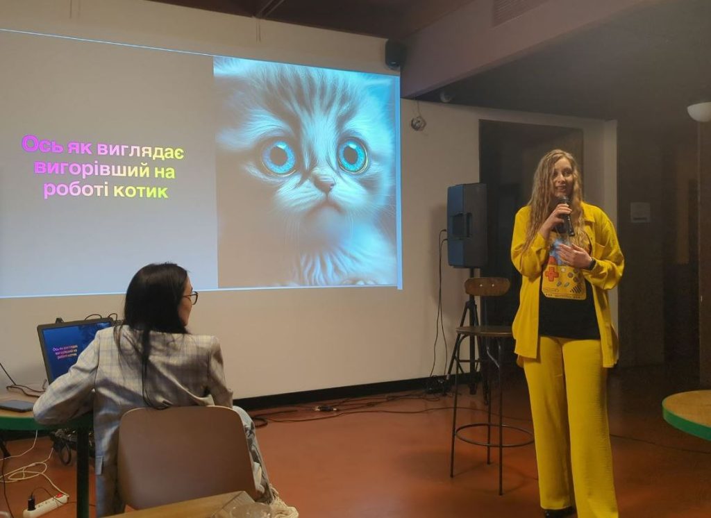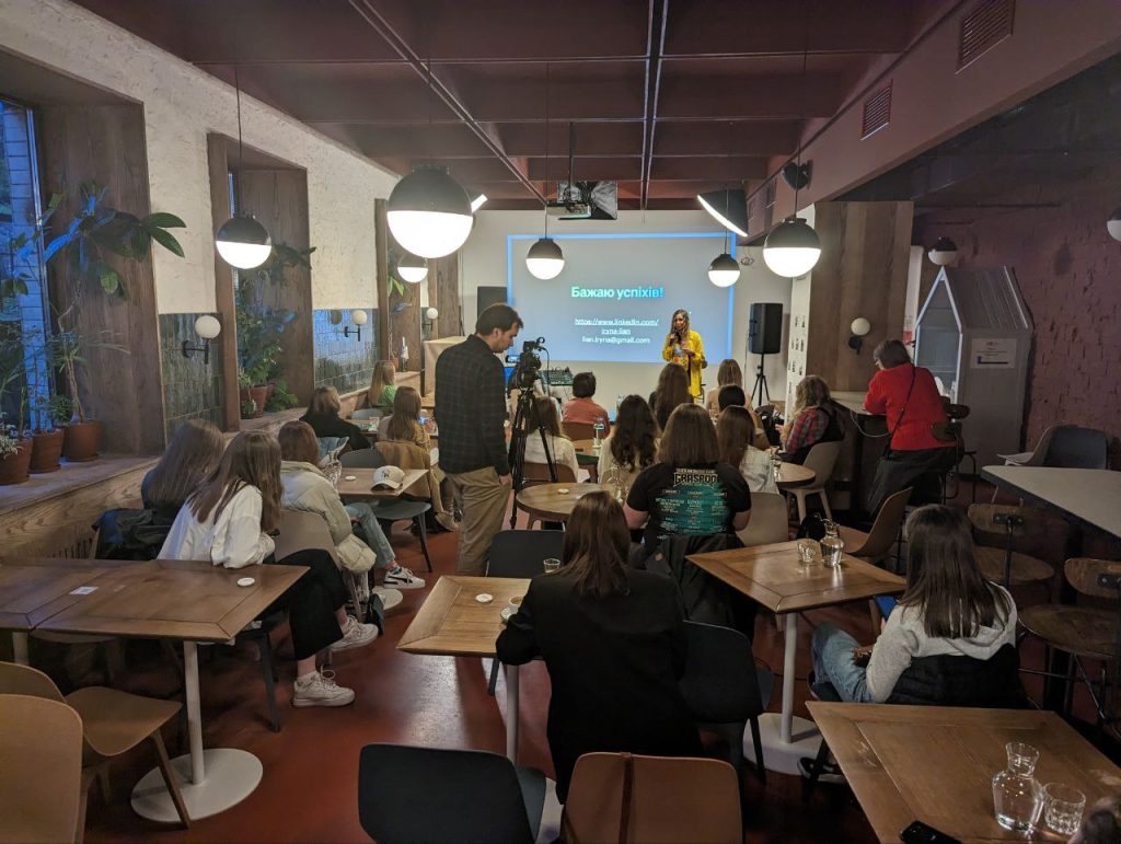 Я обрала Projector Institute — це були безкоштовні курси (вони були підтримкою жінок та жінок з дітьми у період війни, тому що це найбільш соціально уражена група населення), але, з усім тим, дуже якісні курси. Знайшла їхню рекламу в Instagram, написала їм заявку. Вони сказали «Ні». Я написала ще раз. І вони сказали: «Так». Я тоді була вагітна і не сказала їм про свою вагітність, тому що боялася, що, якщо вони про це дізнаються, скажуть: «Пані, ви куди йдете, нащо вам ця освіта? Ви не зможете працювати».